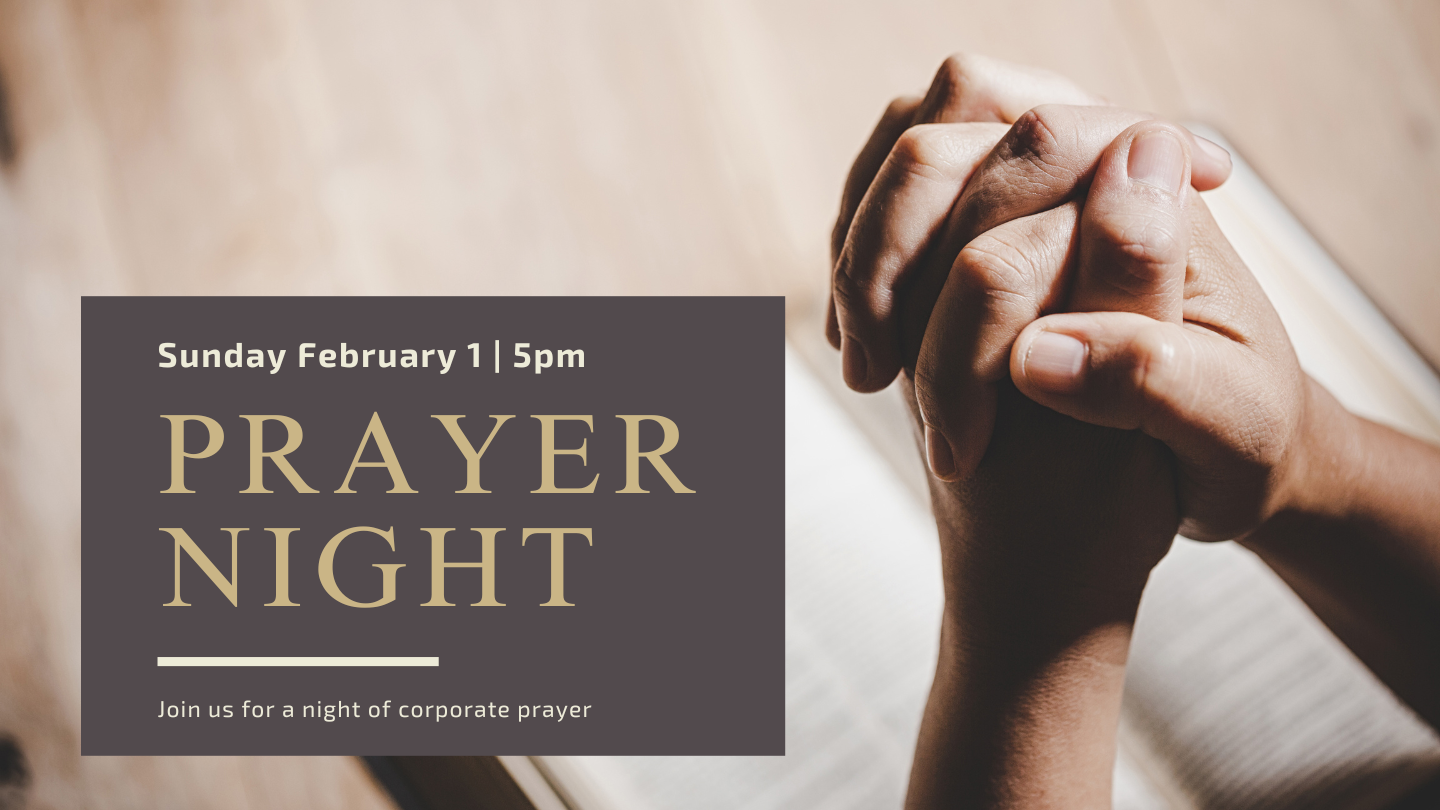 Join us Sunday, February 1st at 5pm as we come together to pray followed by fellowship and a potluck dinner. Prayer Nights, which take place the first Sunday of the month, are a wonderful opportunity to get to know other members of our church while coming to God in faith through prayer.
